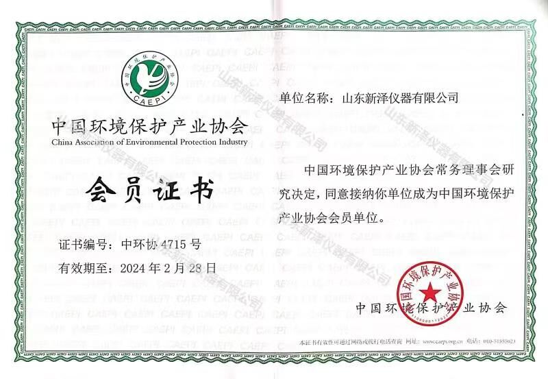 通過嚴(yán)格的資料審核以及業(yè)績?cè)u(píng)估,山東新澤儀器有限公司經(jīng)中國環(huán)境保護(hù)產(chǎn)業(yè)協(xié)會(huì)常務(wù)理事會(huì)研究決定,正式成為中國環(huán)境保護(hù)產(chǎn)業(yè)協(xié)會(huì)會(huì)員單位。