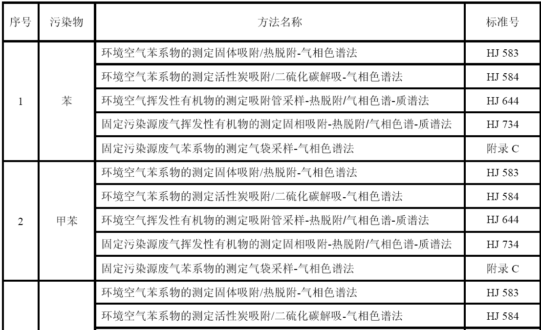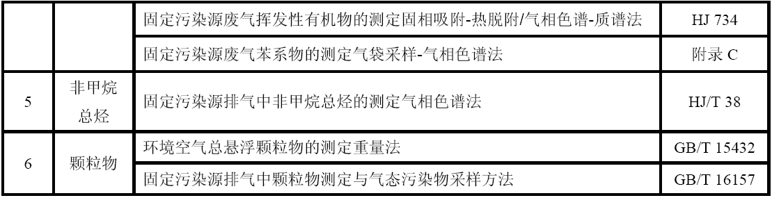 GB 16297 大氣污染物綜合排放標準 GB 24409 汽車涂料中有害物質(zhì)限量 GB/T 15089 機動車輛及掛車分類 GB/T15432 環(huán)境空氣總懸浮顆粒物的測定重量法 GB/T 16157 固定污染源排氣中顆粒物測定與氣態(tài)污染物采樣方法 HJ 583 環(huán)境空氣苯系物的測定固體吸附/熱脫附-氣相色譜法 HJ 584 環(huán)境空氣苯系物的測定活性炭吸附/二硫化碳解吸-氣相色譜法 HJ 644 環(huán)境空氣揮發(fā)性有機物的測定吸附管采樣-熱脫附/氣相色譜-質(zhì)譜法 HJ 732 固定污染源廢氣揮發(fā)性有機物的采樣氣袋法 HJ 734 固定污染源廢氣揮發(fā)性有機物的測定固相吸附-熱脫附/氣相色譜-質(zhì)譜法 HJ/T 38 固定污染源排氣中非甲烷總烴的測定氣相色譜法 HJ/T 55 大氣污染物無組織排放監(jiān)測技術導則 HJ/T 75 固定污染源煙氣排放連續(xù)監(jiān)測技術規(guī)范(試行) HJ/T 194 環(huán)境空氣質(zhì)量手工監(jiān)測技術規(guī)范 HJ/T 293 清潔生產(chǎn)標準汽車制造業(yè)(涂裝) HJ/T 397 固定源廢氣監(jiān)測技術規(guī)范 《建設項目環(huán)境保護設施竣工驗收監(jiān)測技術要求(試行)》(環(huán)發(fā)(2000)38號)