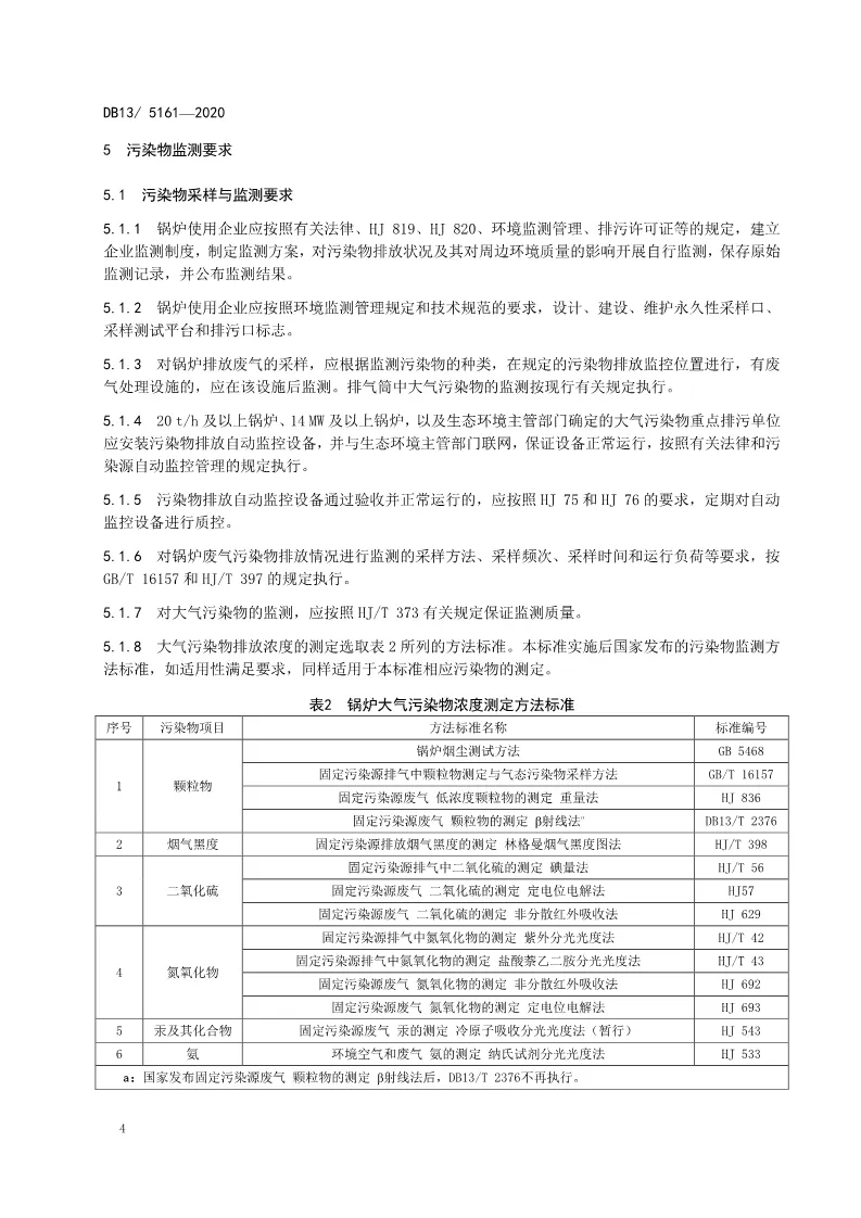 《鍋爐大氣污染物排放標準》DB13_5161-2020——2020.5.1實施