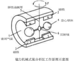 基本原理:其工作原理是基于氧的順磁性,一個小的逆磁性的啞鈴懸掛在非均勻磁場中,當(dāng)被測氣體中有氧氣存在時,氧分子受磁場吸引導(dǎo)致啞鈴旋轉(zhuǎn)、補(bǔ)償力矩的張力要將啞鈴維持在原來的位置,張力的大小與樣氣中的氧分壓成正比。被測氣體氧含量不同,旋轉(zhuǎn)力矩和復(fù)位力矩的平衡位置就不同,也就是啞鈴的偏轉(zhuǎn)角度就不同,這樣,啞鈴偏轉(zhuǎn)角度的大小,就反映了被測氣體中氧含量的多少。對啞鈴球偏轉(zhuǎn)角度的測量,大多是采用光電系統(tǒng)來完成的。